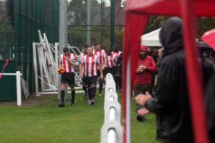 However, that didn’t deter over 250 people turning out, sheltering under hoods, umbrellas and gazebos for the visit of Irish heritage side FC Roast.