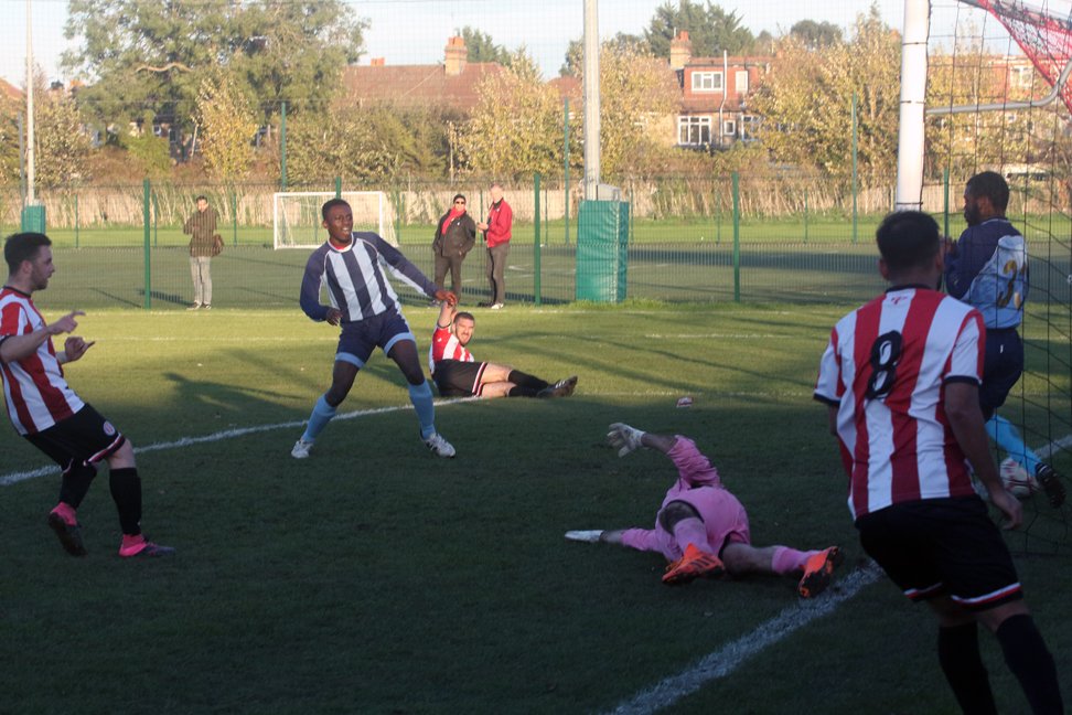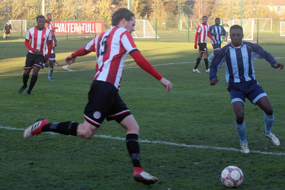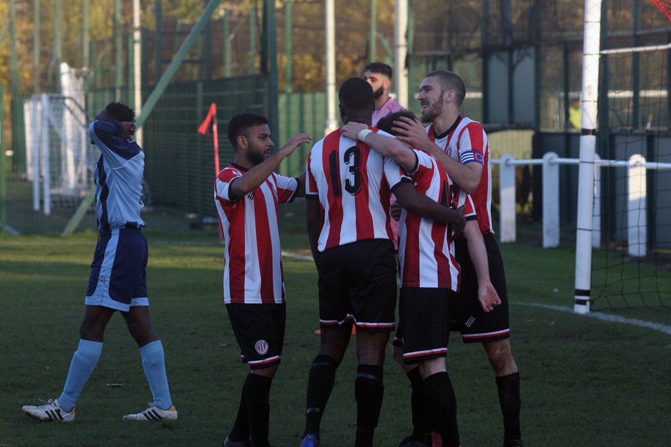 Clapton’s fifth was the result of persistent closing down of opposition midfielders. Having won the ball on the right wing, Stanley unselfishly rolled the ball back to the incoming Louis Rene, whose low shot deflected past the hapless ‘keeper.
