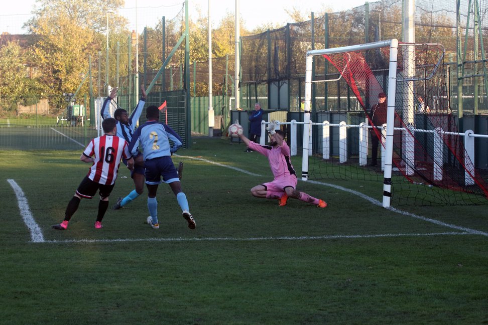 Angered at losing a clean sheet, the ‘keeper punched his post in frustration. The Tons’ search for a clean sheet in competitive football continues.