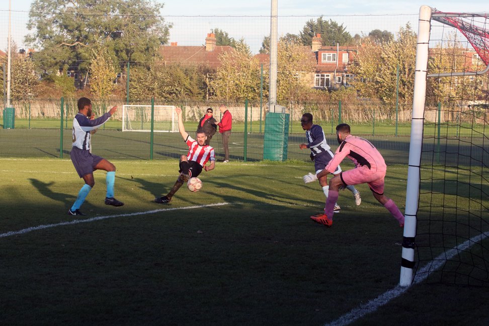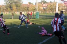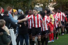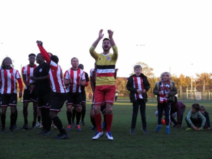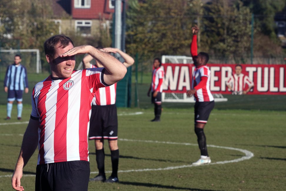 Clapton’s 10th goal seemed to be the result of the away side’s understandably demoralised defence. Crosbie scored his 4th of the game in the closing stages, having received the ball into feet, he found himself with no-one within two yards of him, turned, feigned and finished.