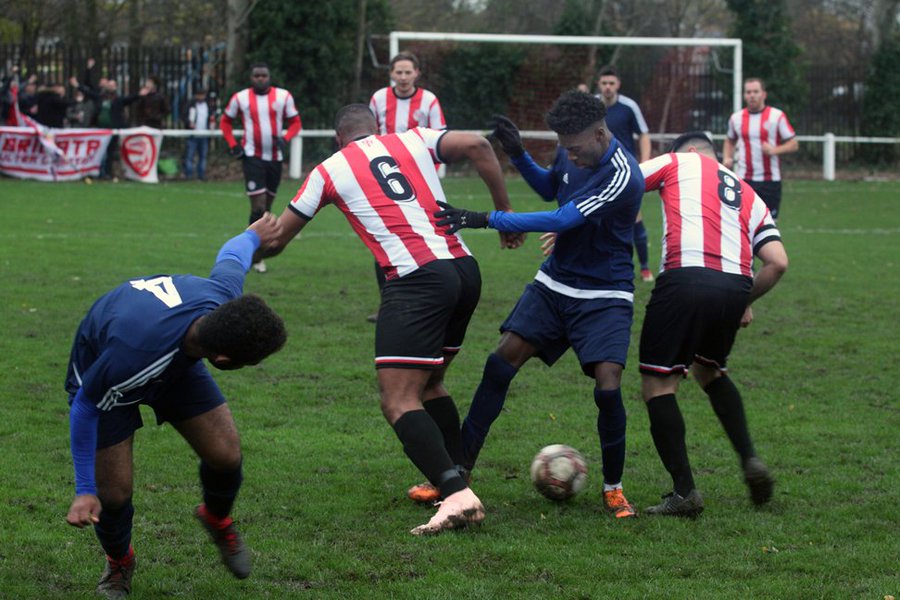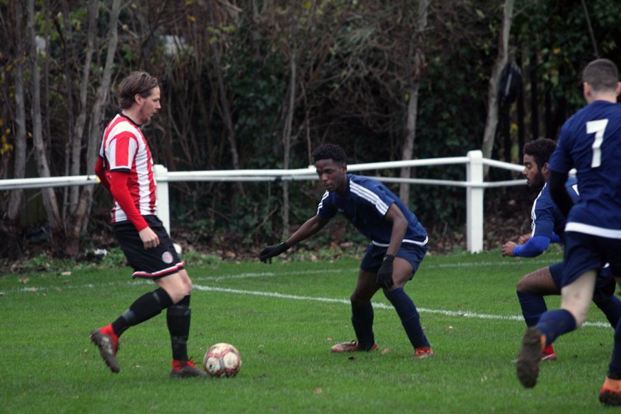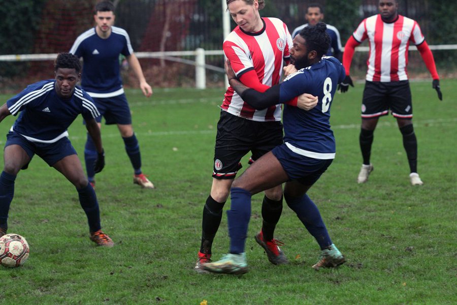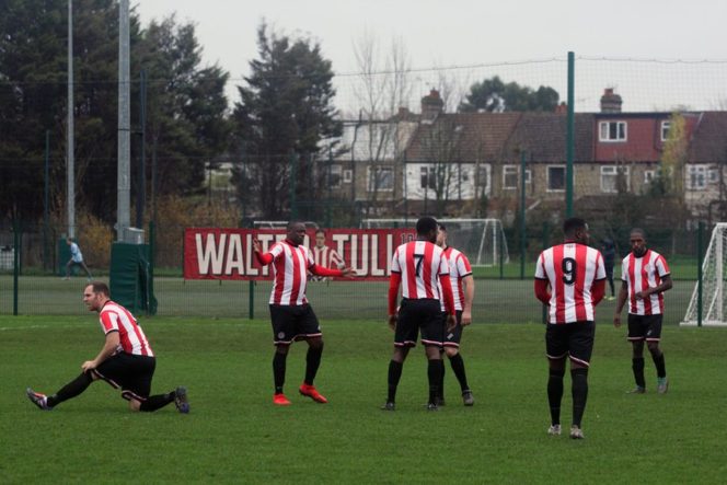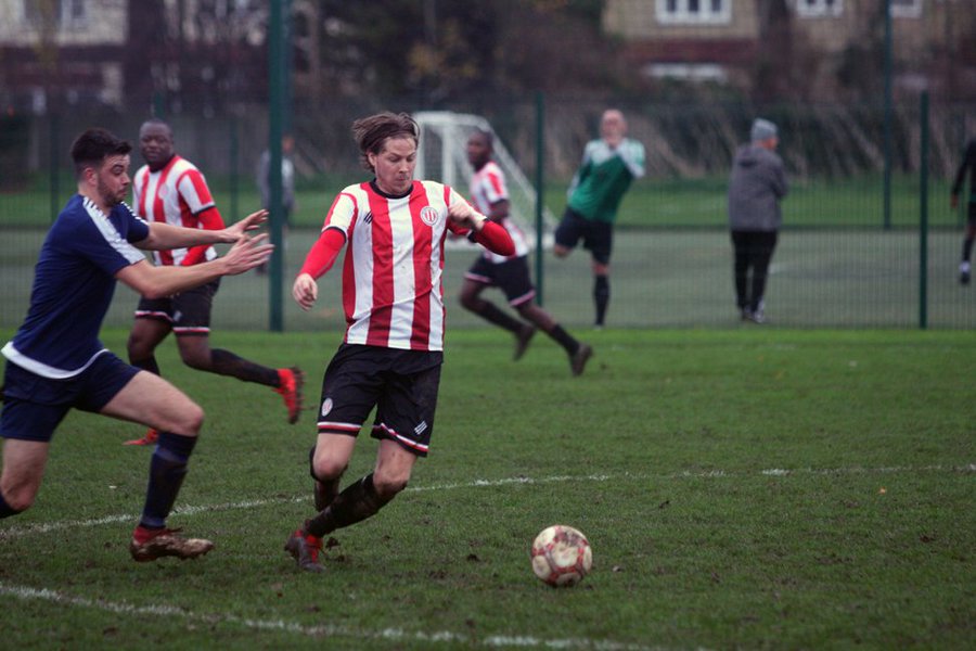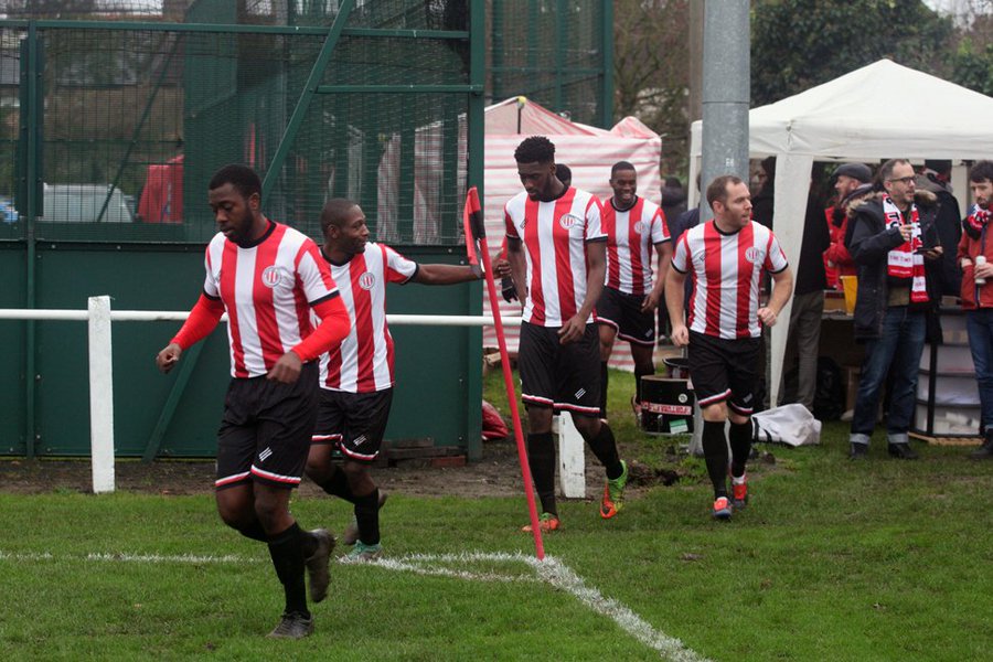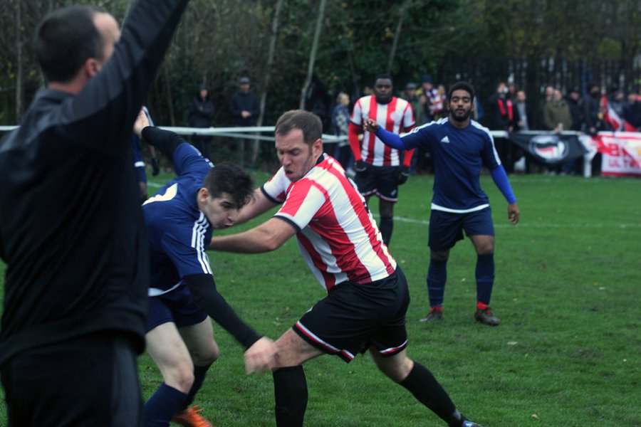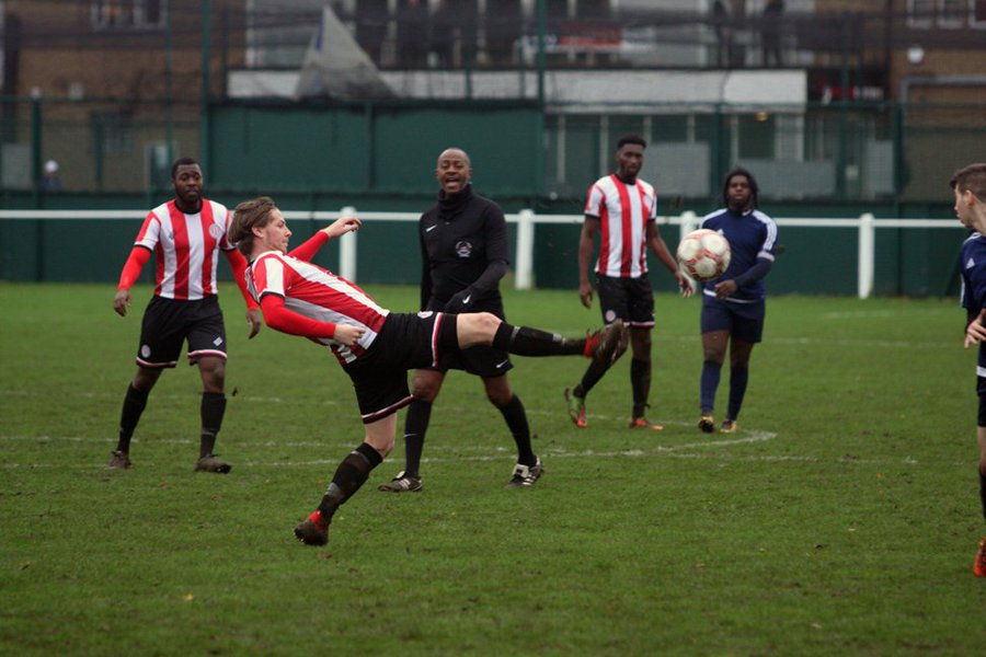 Many non-league fixtures around the south east were postponed due to a rainy week, but the Stray Dog was still in a suitable condition for play. However, the slow, heavy pitch had the potential to cause problems for a Clapton side that has adopted a style of play involving a lot of passing and ball movement.