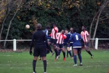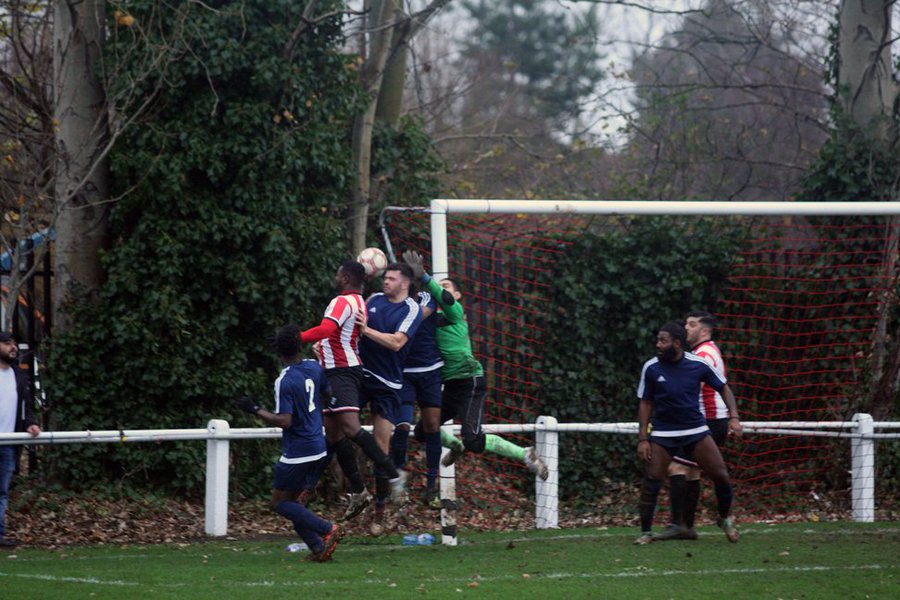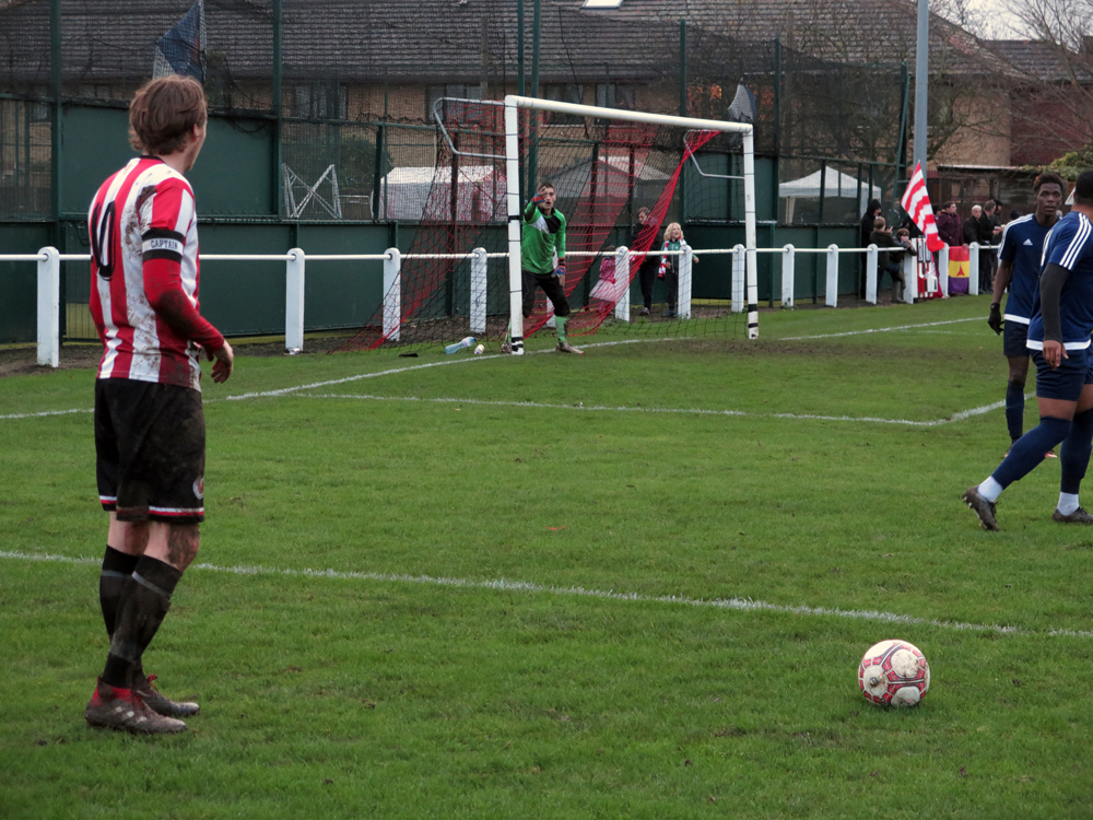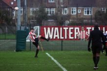 The first big chance came for the visitors as their number 9 once again found space in the Clapton area and made a deft turn and volley that went in to Anfossy’s right. However the goal was disallowed for offside.