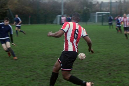 As the second half began, the conditions were still causing a challenge for both sides, wary of injuries on the slippery pitch. However, early on Eastfield looked ready to make another of their speedy attacks, only to be stopped by a brave challenge from Dean Bouho who came racing in at full speed to shut their winger down, almost getting some Eastfield boot studs in his head for his troubles.