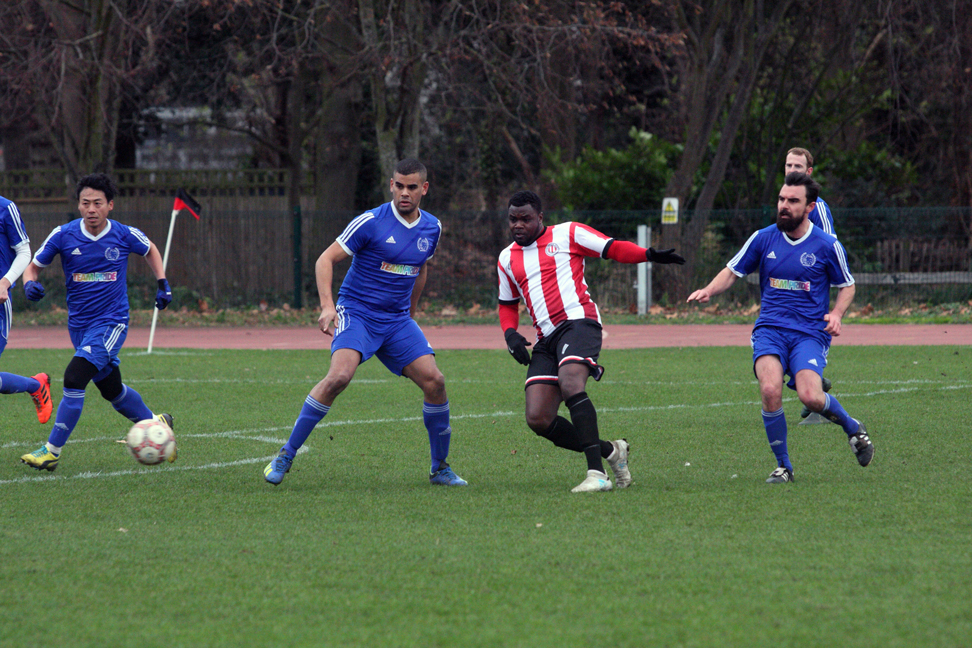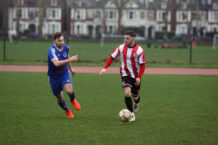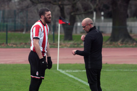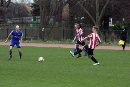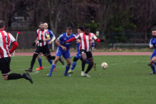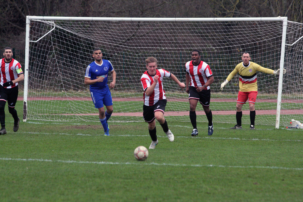A poor goalkick saw Clapton coming straight back at them. Adejokun looped the ball along the goal line, with goalie Aware nowhere to be seen. Stanley rushed in, but just failed to connect to tap into the empty net. The ball went all the way through to an off-balance Crosbie, who couldn’t turn in from the tight angle.