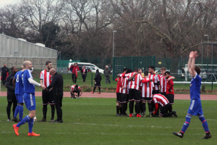 The Stonewall players celebrated wildly in front of the Clapton fans for a second time, this time knowing it was gamew over.