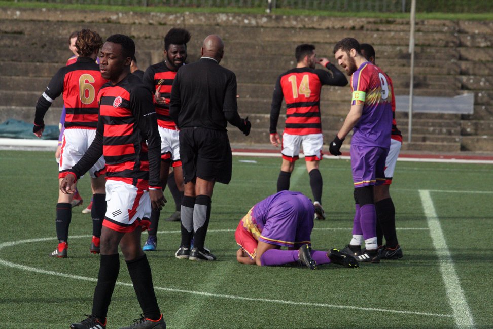 The management of Clapton had had a difficult week in terms of squad selection, with 13 players unavailable due to injuries and work commitments. Then during the warm-up, sub Imran Rehman pulled up injured too.