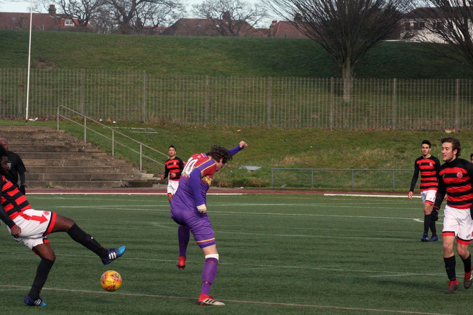 As the first half went on, Clapton began to find their feet and were able to put together a string of good efforts that they were unlucky to be rewarded for. The first opportunity came for Eliot Crosbie who received a long ball in the box, however was quickly surrounded by three North West defenders.