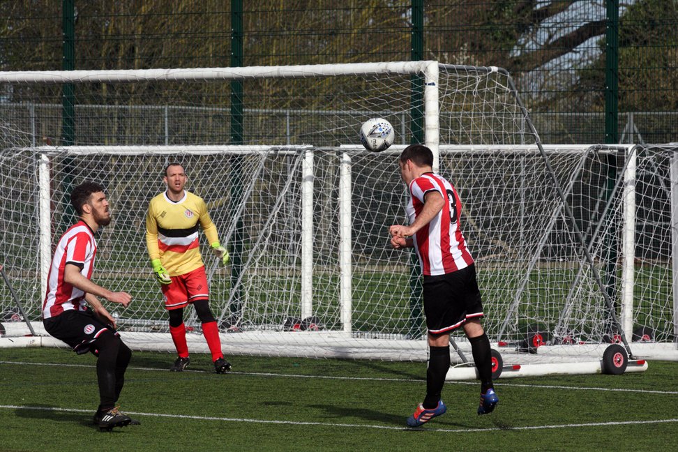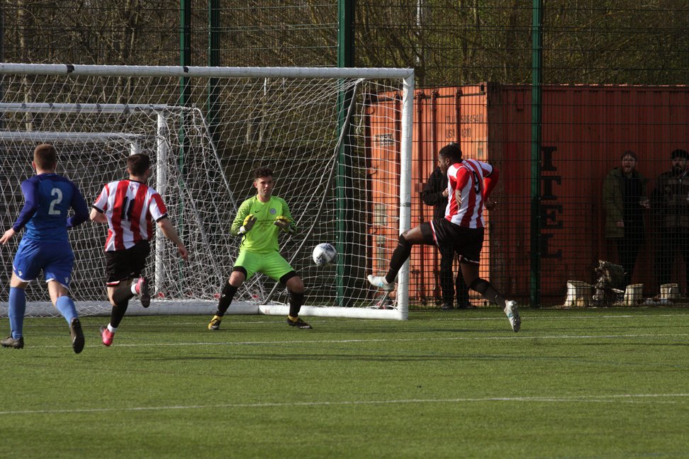 Next, Stefan Kilron took the ball down near the penalty spot and turned smartly. His shot was powerful but just over the bar.