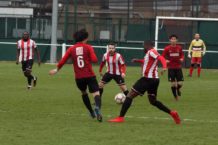 Then on 37 minutes, Stanley had a great chance to double the home advantage. He burst through between the centre backs. Bearing down on the keeper, he tried to slide it into the bottom corner, but it slipped just to the right of the post.