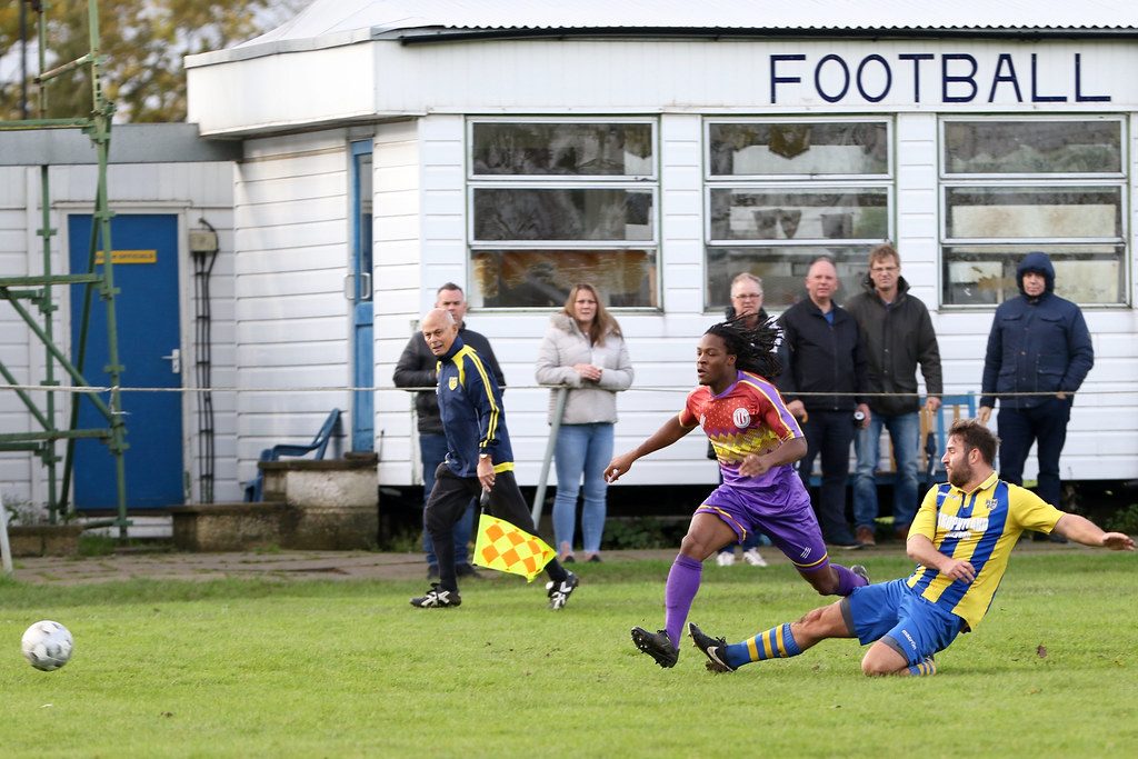 An early chance for the Tons saw player-coach Sham Darr, who had an impressive game, shape to blast home from the edge of the box… only for a huge divot to leave him kicking air instead.