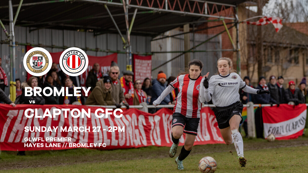 Bromley vs Clapton CFC is on Sunday, March 27 2022 at 2pm at Hayes Lane, Bromley, BR2 9EF.