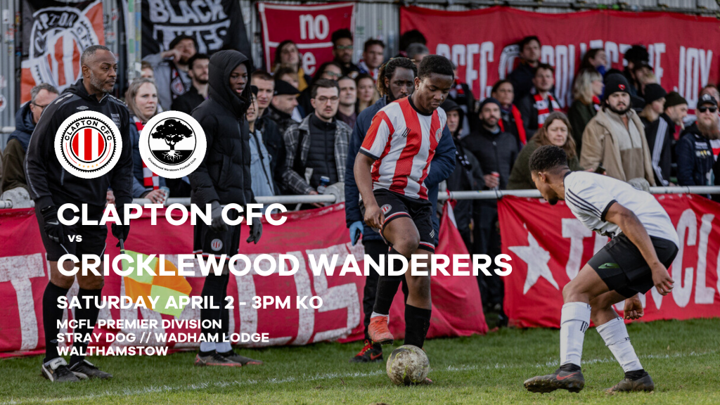 Clapton CFC vs Cricklewood Wanderers is on Saturday, April 2 2022 at 3pm at the Stray Dog, Wadham Lodge, Kitchener Road, Walthamstow.