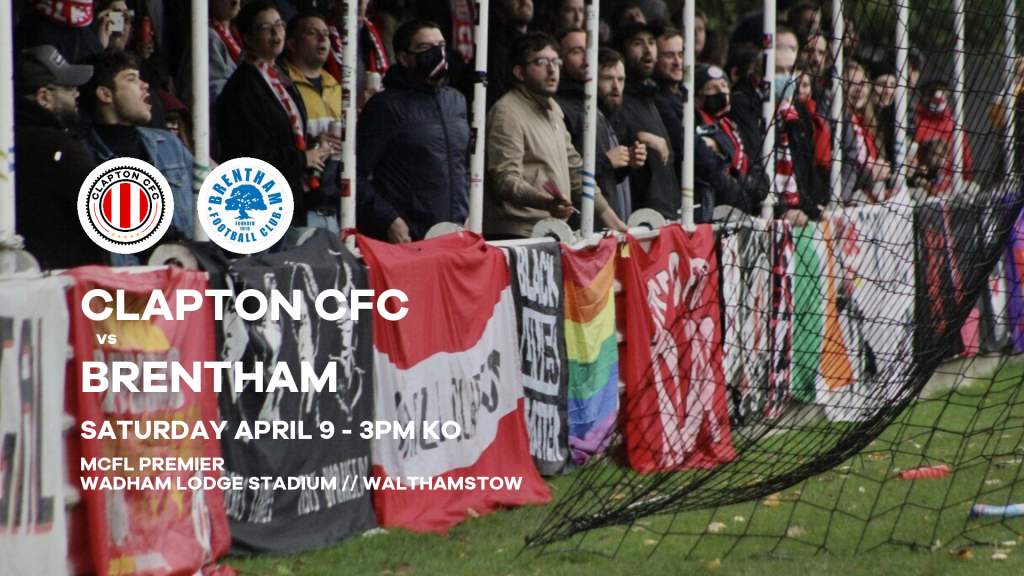 Clapton CFC vs Brentham is on Saturday, April 9 2022 at 3pm at Wadham Lodge Stadium, Kitchener Road, Walthamstow.
