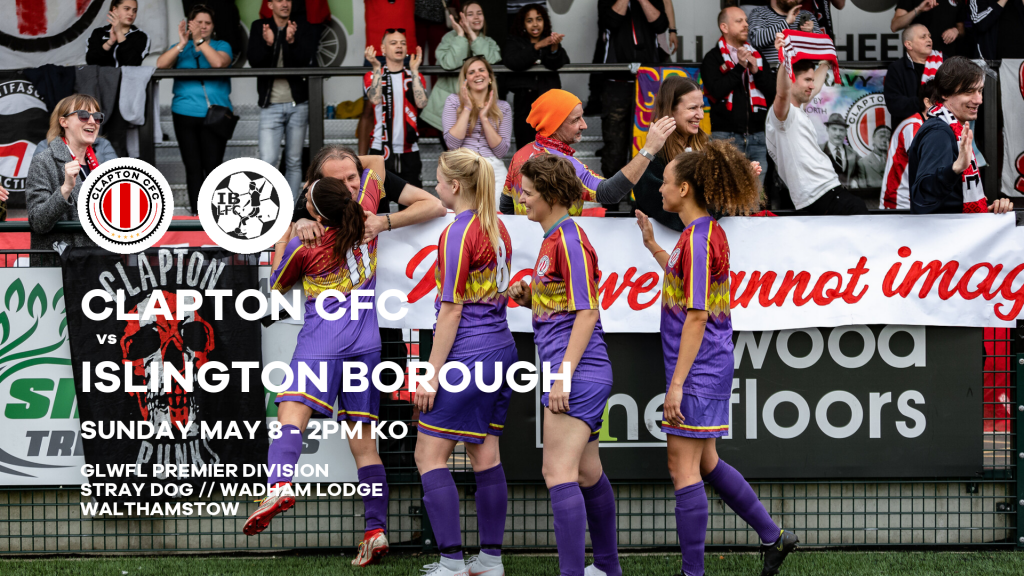 Clapton CFC vs Islington Borough is on Sunday, May 8 2022 at 2pm at the Stray Dog, Wadham Lodge, Kitchener Road, Walthamstow.