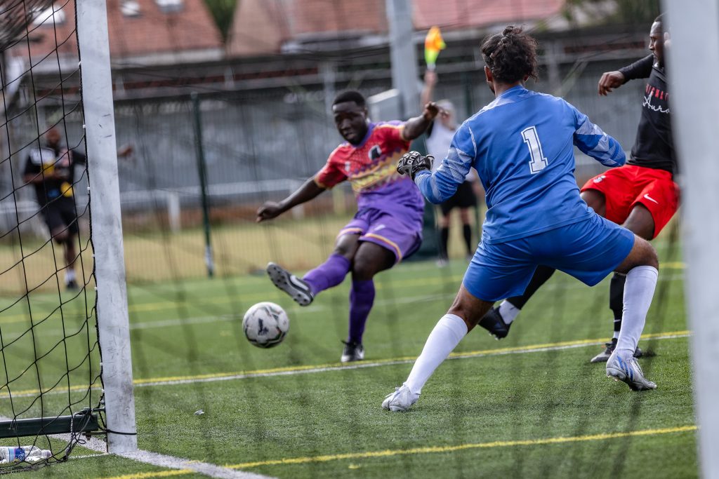 Another early free kick from Shepherd’s Bush saw a low shot saved by Francis. A Clapton Community corner saw the goalkeeper flapping, as Charlie Fagan headed home, only for the referee to blow for a foul.