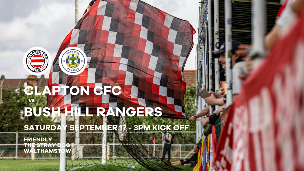 Clapton CFC vs Bush Hill Rangers is on Saturday, September 17 2022 at 3pm at the Stray Dog, Wadham Lodge, Kitchener Road, Walthamstow.
