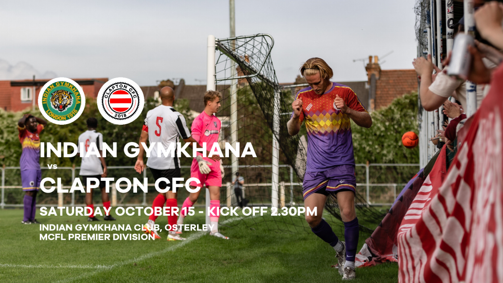 Indian Gymkhana Club vs Clapton CFC is on Saturday, October 15 2022 at 2.30pm at their club on Thornbury Avenue, Osterley, TW7 4NQ.