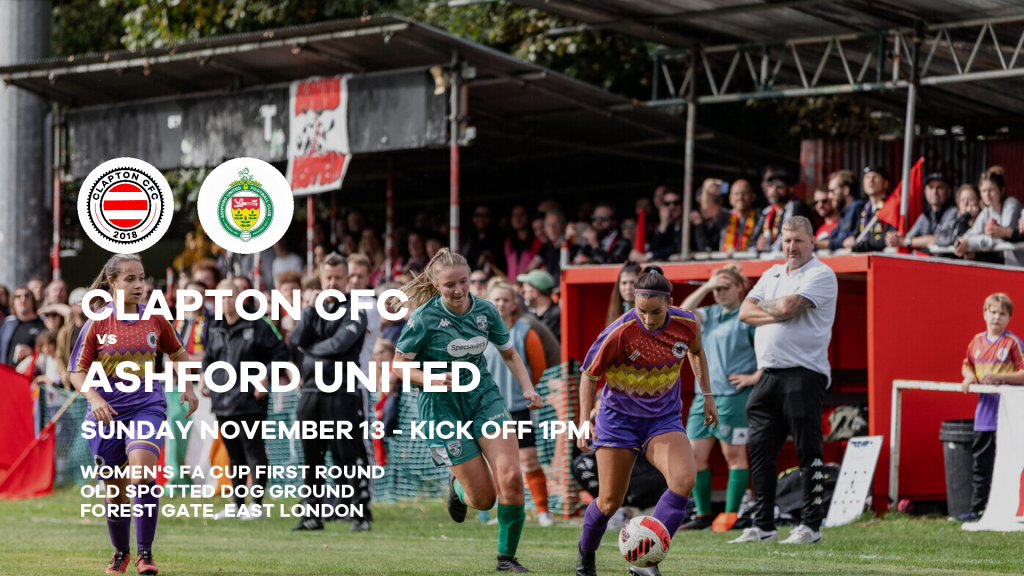 Clapton Community FC vs Ashford United in the Women’s FA Cup First Round takes place at the Old Spotted Dog Ground at 1pm on Sunday 13th November 2022.