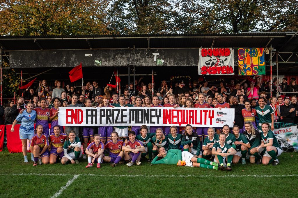 So at our Women’s FA Cup first round tie against Ashford United, both sets of players posed for a photo in front of a banner ‘End FA prize money inequality’.