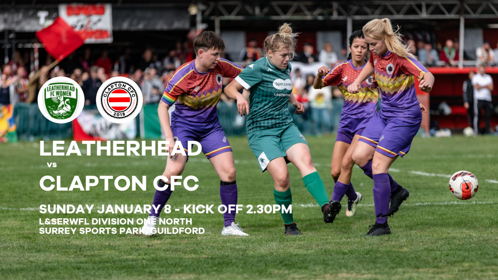 Leatherhead FC vs Clapton CFC is on Sunday, January 8 2023 at 2.30pm at Surrey Sports Park, University of Surrey, Richard Meyjes Road, Guildford Surrey, GU2 7AD
