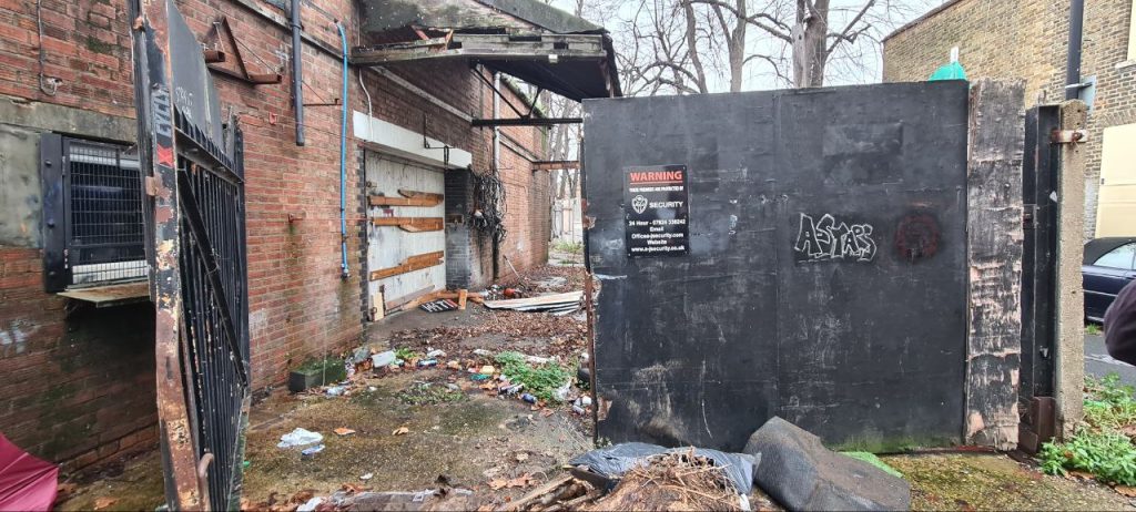 The warehouse contains changing rooms, albeit in a poor condition. Once we have refurbished them and met all the FA and league requirements, however, the men’s first team will be able to start playing competitively at the Old Spotted Dog Ground.