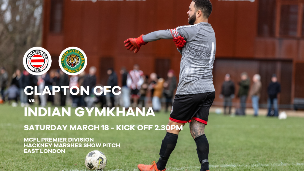 Clapton CFC vs Indian Gymkhana is on Saturday, March 18 2023 at 2.30pm at the Hackney Marshes Show Pitch off Homerton Road, Hackney London E9 5PF