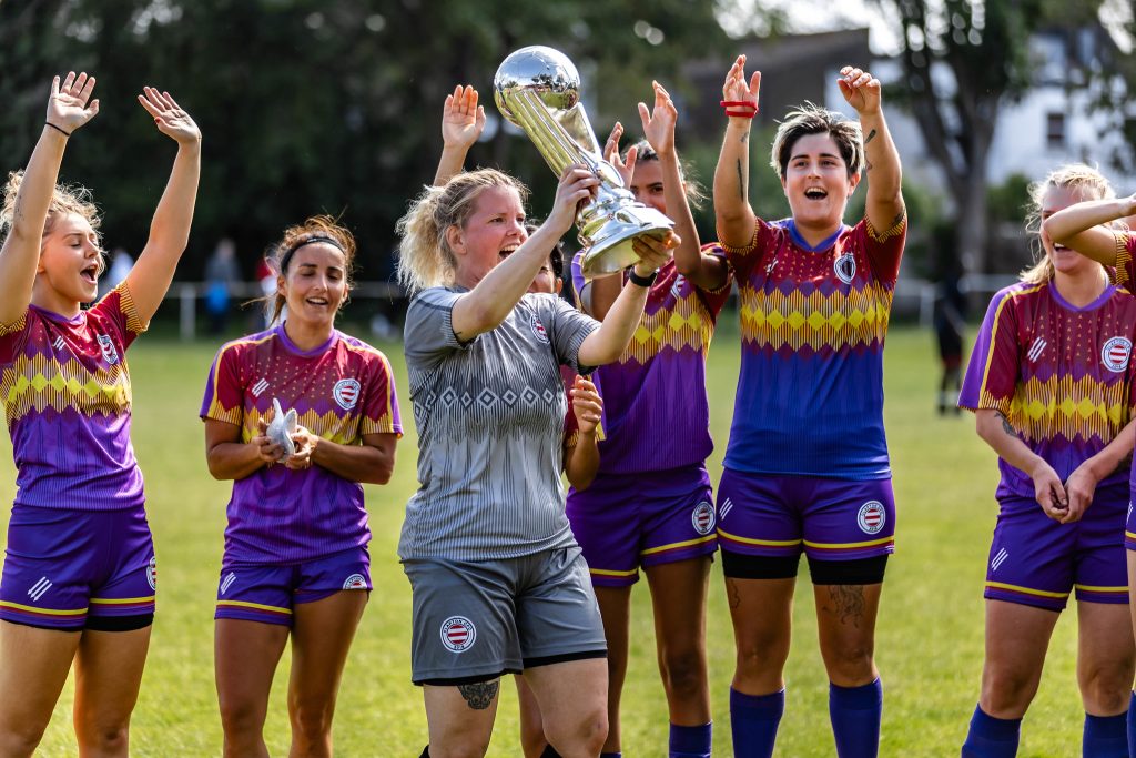 Clapton CFC women’s first team lifted the Supporters Direct Shield on Sunday thanks to a 3-1 victory over an FC United of Manchester XI at the Old Spotted Dog Ground.