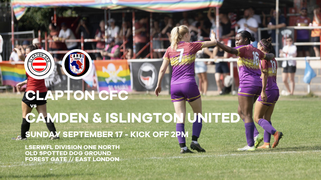 Clapton Community FC vs Camden & Islington United takes place on Sunday, September 17 2023 with a 2pm kick off at the Old Spotted Dog Ground, Forest Gate, East London.