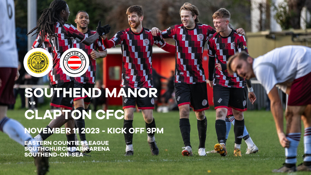 Southend Manor FC vs Clapton Community FC takes place on Saturday, November 11 2023 with a 3pm kick off at Southchurch Park Arena, Northumberland Cres, Southend-on-Sea SS1 2XB.