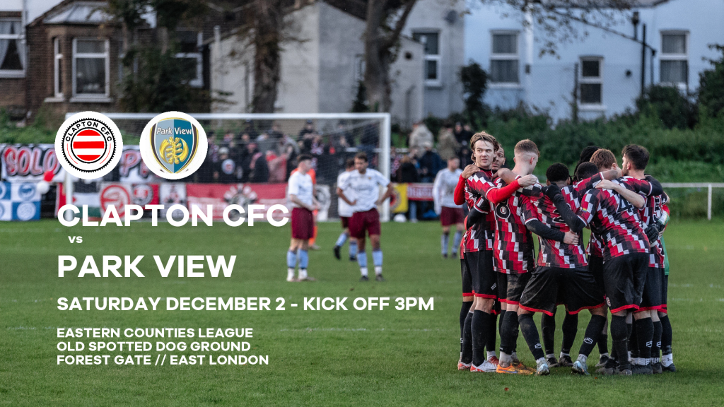 Clapton Community FC vs Park View takes place on Saturday, December 2 2023 with a 3pm kick off at the Old Spotted Dog Ground, Forest Gate, East London.