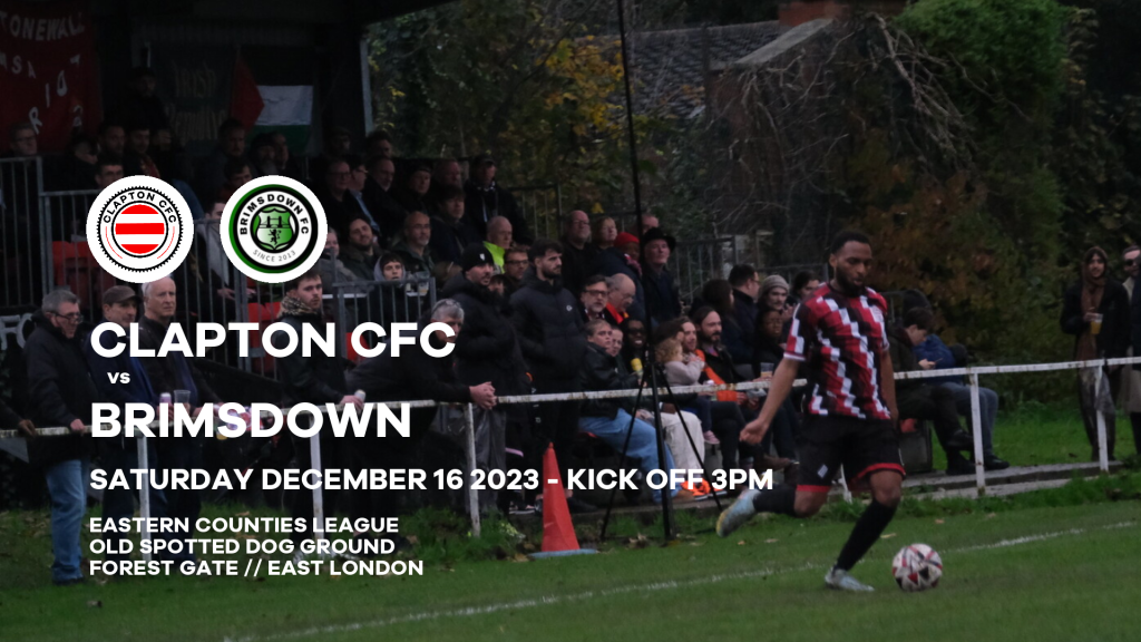 Clapton Community FC vs Brimsdown takes place on Saturday, December 16 2023 with a 3pm kick off at the Old Spotted Dog Ground, Forest Gate, East London.