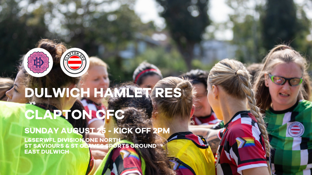 Dulwich Hamlet Reserves vs Clapton CFC is on Sunday, August 25 2024 at 2pm at St. Saviour’s & Saint Olave’s School Sports Ground, Green Dale, East Dulwich, London SE22 8TX