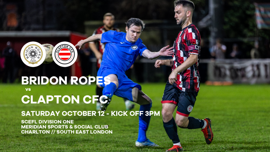 Bridon Ropes vs Clapton Community FC takes place on Saturday, October 12 2024 with a 3pm kick off at Meridian Sports & Social Club, Charlton Park Lane, SE7 8QS