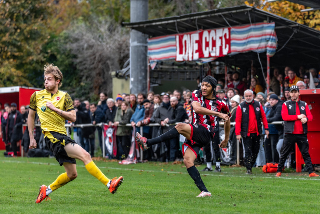 Following last week’s FA Vase defeat, paired with the absence of a number of key players (notably James Briggs and Joel Akuwudike), you would be forgiven for predicting a loss of confidence. On the contrary, the team showed their versatility today, defeating a formidable opponent with confidence riding high on the pitch and in the scaffold, as stated by goalscorer Charlton: