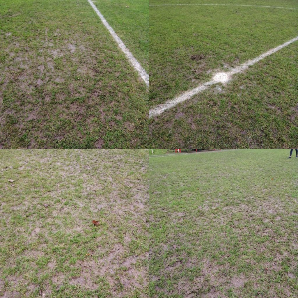 A ref carried out an inspection at 11am and deemed it unplayable. Days of rain has left the pitch very muddy and with standing water in places.