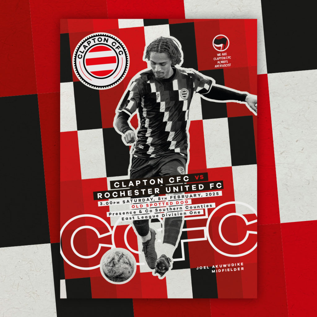You can now download the matchday programme for the Clapton CFC Men’s First Team game against Rochester United on Saturday, February 8 2025.