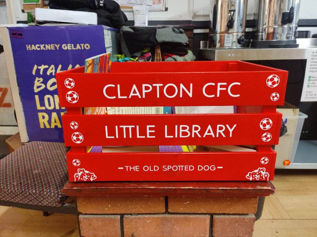 Book donations welcome to Clapton CFC ‘Little Library’ Latest Clapton CFC news Old Spotted Dog Ground February 24, 2025February 20, 2025 We’re looking for donations to the “Little Library” for young fans at Clapton CFC home matches. Bring any donations into the Old Spotted Dog Clubhouse on a match day please. Picture books are better for much younger children.
