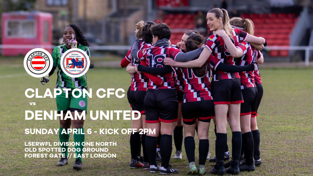Clapton Community FC vs Denham United takes place on Sunday, April 6 2025 with a 2pm kick off at the Old Spotted Dog Ground, Forest Gate, East London.