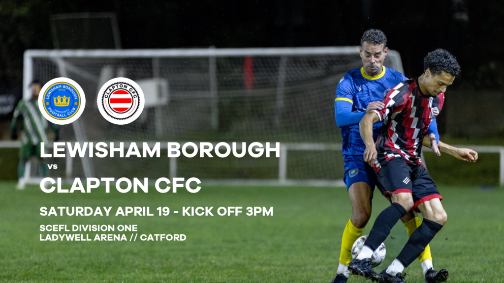 Lewisham Borough vs Clapton Community FC takes place on Saturday, April 19 2025 with a 3pm kick off at the Alex Yee Ladywell Arena, Silvermere Road, Catford, SE6 4QX