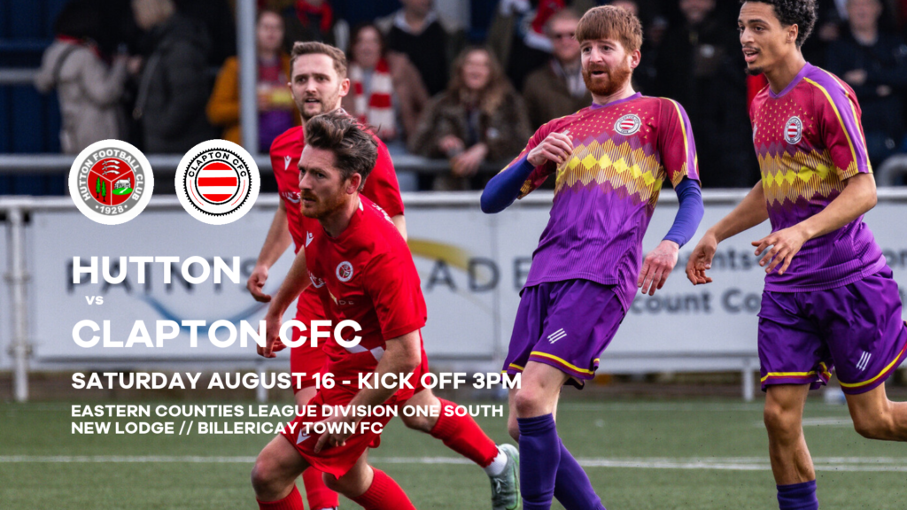 Hutton FC vs Clapton Community FC takes place on Saturday, August 16, kick off 3pm, at New Lodge, Blunts Wall Road, Havering’s Grove, Billericay, Essex CM12 9SA