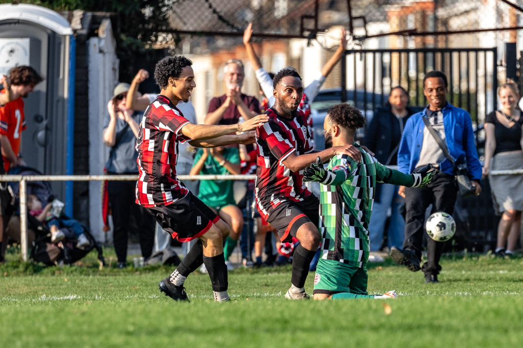 The FA changed the entry requirements the following season and now only Step 5 and 6 teams can play in the competition. That meant we didn’t reappear in the Vase until 2024/25, winning two ties against Hoddesdon Town (on penalties, pictured at the top of this page) then higher division Stansted before losing to another higher division side Thetford Town on penalties.