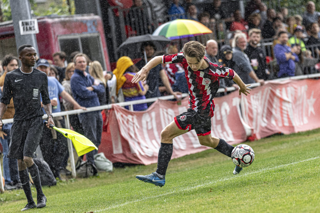 Chances were limited for both sides until the breakthrough arrived just before the half-hour. Sam Cook was bundled over in the box, and from the resulting spot-kick James Briggs stepped up to calmly slot home, giving Clapton a 1–0 lead on 28 minutes.